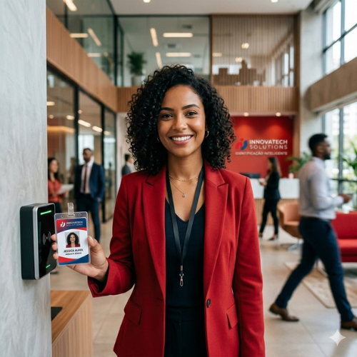 No ecossistema corporativo moderno, a identificação deixou de ser um detalhe administrativo para se tornar um ativo estratégico de segurança e branding. No mercado B2B, a primeira interação física de um parceiro, cliente ou novo talento com sua organização ocorre, muitas vezes, através de uma credencial.
